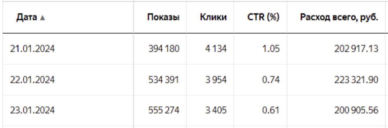 Иногда расход варьируется в тех же диапазонах около 200 000 руб/день