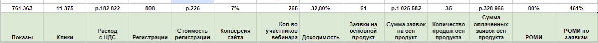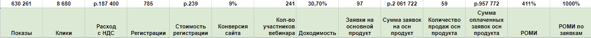 С учетом обучения рекламного кабинета, поиска стратегий и т. д. первый месяц отработали с ROMI 51% и ценой регистрации 228 руб