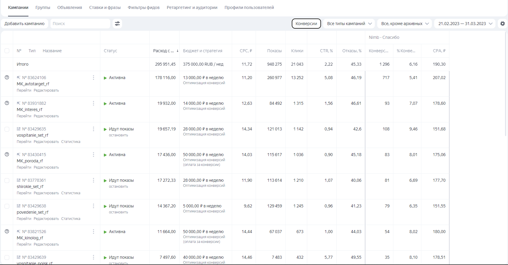 Клиент обратился к нам в конце февраля для масштабирования за счет второго кабинета, с результатом по окупаемости минимум 150%.